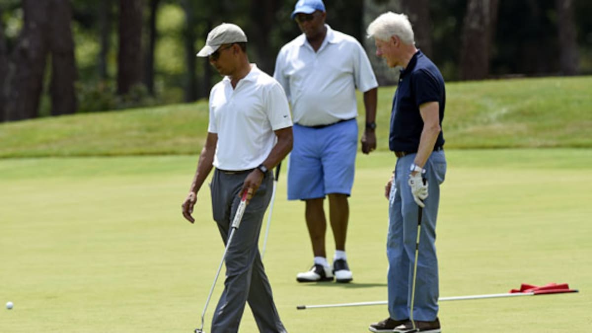 Aparentemente relajado, con gafas de sol y una gorra, Obama apareció sonriente mientras practicaba su deporte favorito junto a Clinton, ataviado con un polo azul marino, según las fotografías divulgadas por los medios estadounidenses.