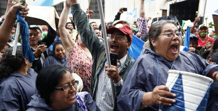 Decenas de miles de manifestantes que exigieron la destitución de Pérez Molina vieron sus deseos cumplidos en parte cuando éste renunció para responder a cargos de corrupción como presunto cabecilla de una defraudación masiva de la Aduana. El fin de semana estuvo encerrado en una prisión militar.