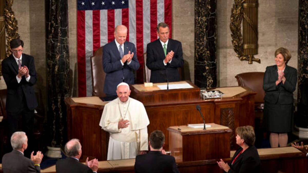El papa pronunció un discurso en el que utilizó como referencias cuatro personalidades de la historia estadounidense, el expresidente Abraham Lincoln, el Premio Nobel de la paz Martin Luther King, la fundadora del Movimiento de Trabajadores Católicos, Dorothy Day, y el monje cisterciense Thomas Merton.