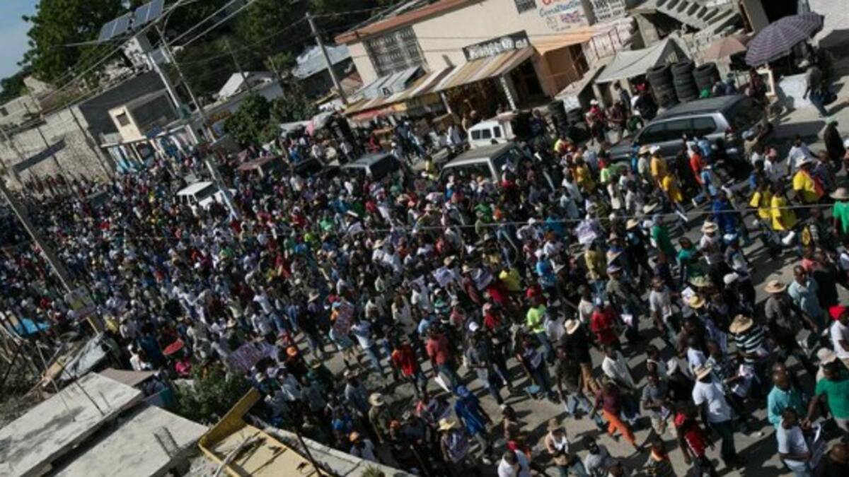 La tensión fue palpable en la manifestación, a la que acudieron cientos de personas, cuando la marcha llegó a las cercanías de la sede del Consejo Electoral Provisional (CEP) en el barrio de Petionville.