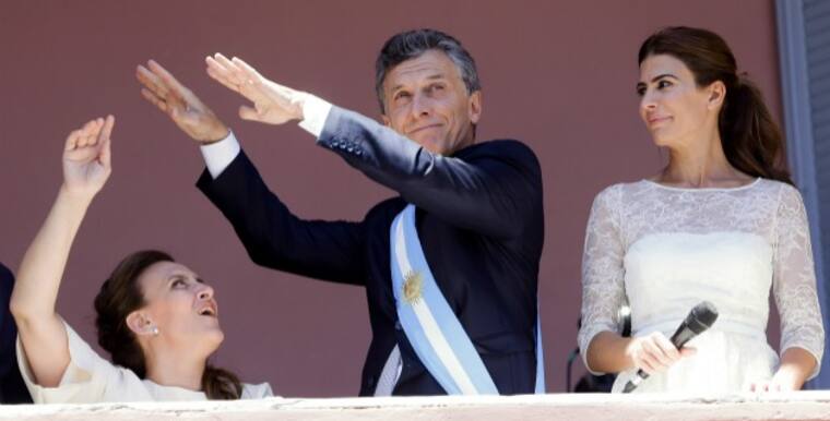 Con la banda presidencial cruzada, el bastón de mando en la mano y flanqueado por su tercera esposa, la diseñadora Juliana Awada, y la pequeña hija de ambos, Antonia, el flamante mandatario dijo a los miles de congregados ante la Casa de Gobierno que su equipo tiene 'mucha vocación por hacer para que los argentinos vivan mejor'.