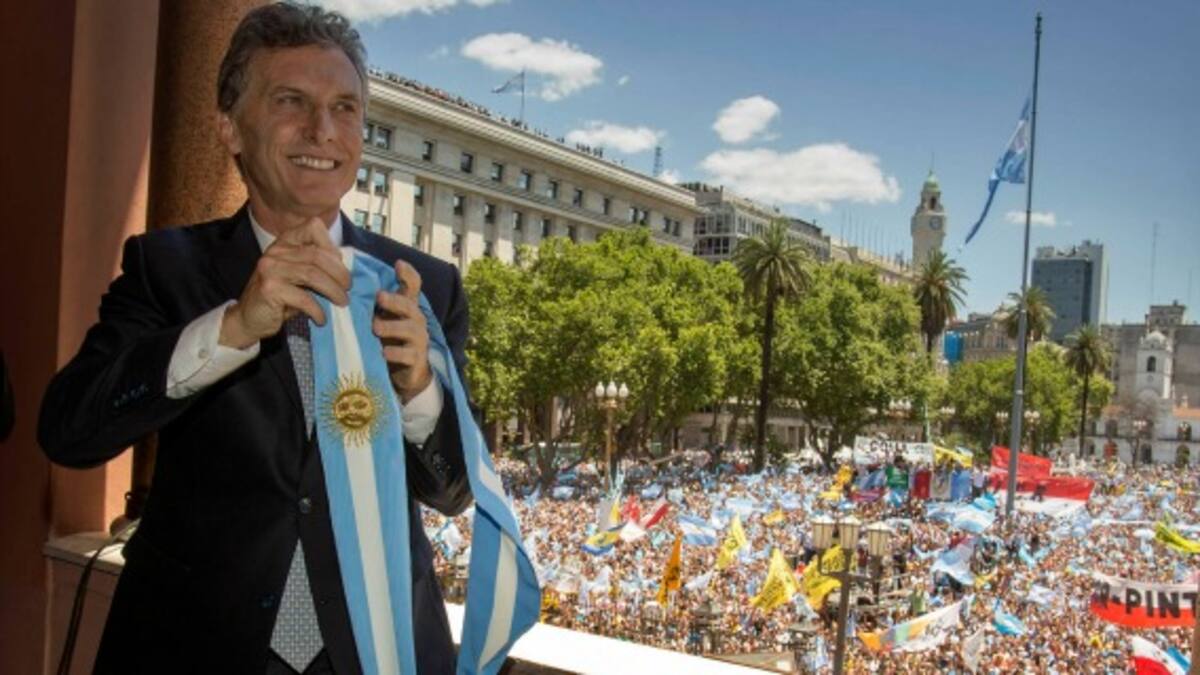 'Gracias por acompañarnos. Tenemos que seguir juntos, esta Argentina la construimos todos juntos', exclamó Macri, asomado a uno de los balcones de la Casa Rosada, sede del Ejecutivo, ante una multitud congregada en la Plaza de Mayo, con banderas argentinas.
