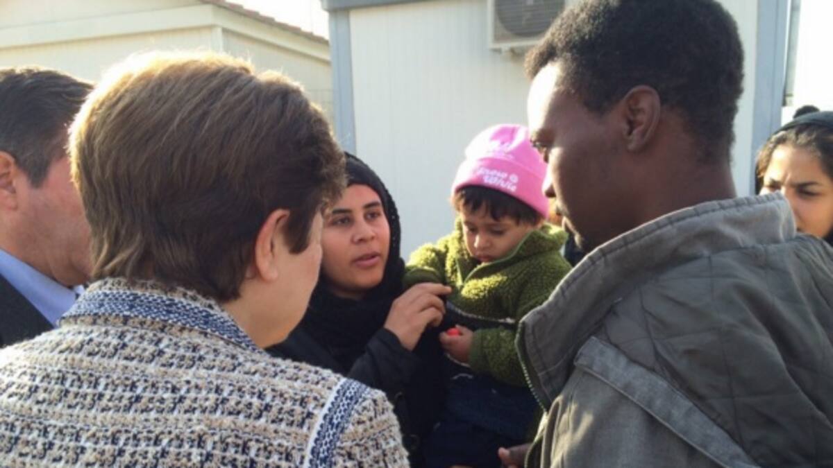 Georgieva relató el caso de una familia iraquí que espera en el campo ateniense a ser reubicada a Lituania y que le regaló una caja de porcelana con dulces durante su visita, como ejemplo de los destinatarios de este programa.