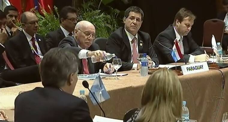 En el encuentro participan el presidente paraguayo, Horacio Cartes; el de Argentina, Mauricio Macri, en la que será su primera cumbre; el de Uruguay, Tabaré Vázquez, y la mandataria de Brasil, Dilma Rousseff.