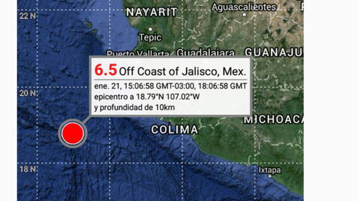 Un sismo de magnitud 6,5 en la escala de Richter sacudió hoy la costa del estado mexicano de Jalisco sin que hasta al momento se reporten víctimas o daños materiales, informó hoy el Servicio Sismológico Nacional (SSN).