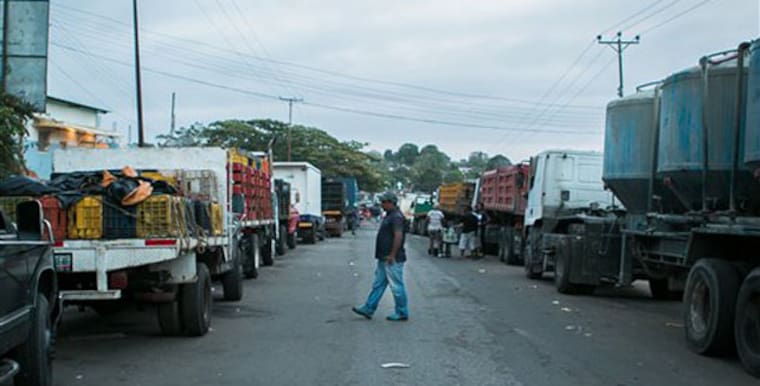 El bloqueo de la carretera es una de las principales expresiones de la protesta por la falta de información sobre los 28 mineros cuyo paradero se desconoce desde el 4 de marzo, cuando según dos sobrevivientes fueron asesinados por una banda dirigida por un colombiano de alias 'El Topo'.
