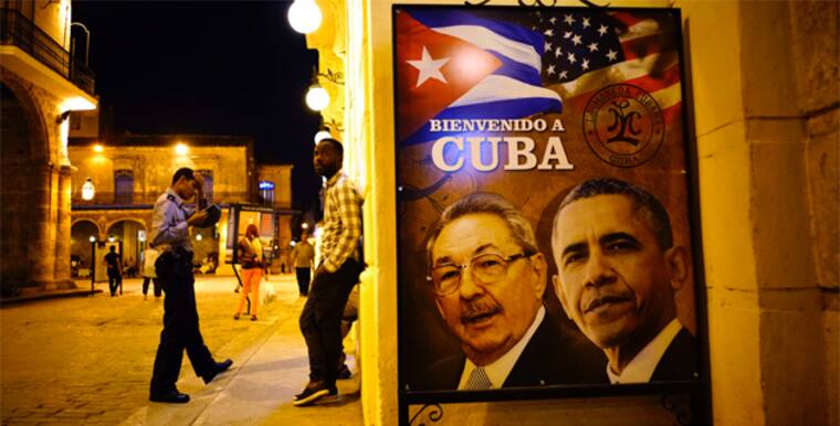 Afiches con los rostros de Raúl Castro y Barack Obama, que le dan la bienvenida al mandatario estadounidense, se encuentran en varios puntos de La Habana.