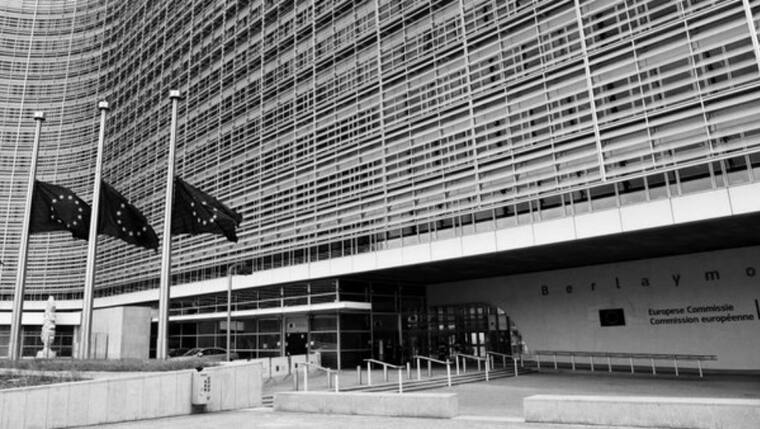 Las banderas europeas ya ondeaban a media asta, pero por la noche la CE iluminó sus ventanas con los colores de la bandera belga.
