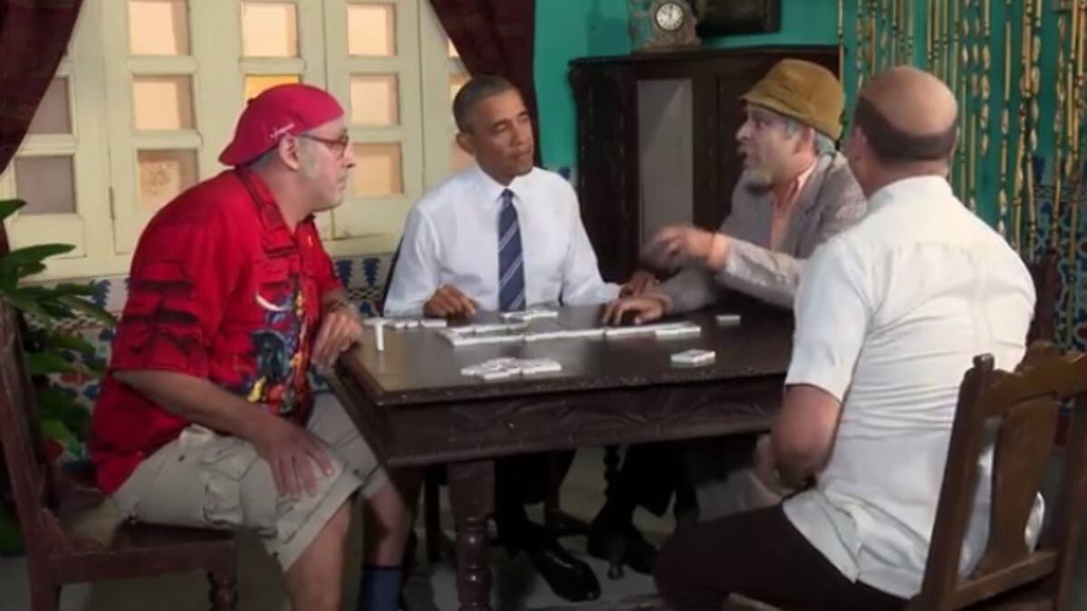 En el nuevo vídeo, divulgado en el sitio de Facebook de la Embajada de EE.UU. en Cuba, el presidente norteamericano aparece en la casa de Pánfilo, mientras éste juega una partida de dominó con sus amigos 'Facundo' y 'Chequera', sus compañeros en el programa televisivo semanal 'Vivir del Cuento'.