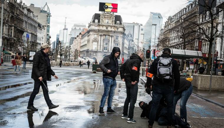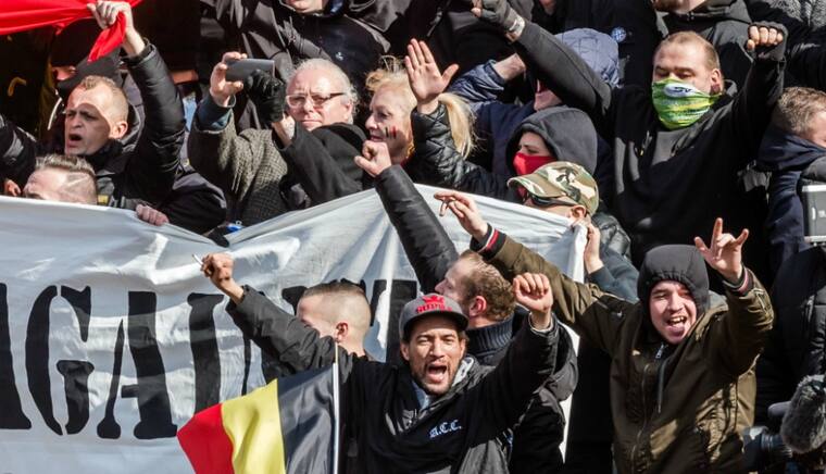 La policía antimotines de Bélgica se enfrentó el domingo con cientos de partidarios de extrema derecha durante una manifestación realizada en la plaza que ha sido utilizada para rendir tributo a las víctimas de los atentados suicidas en Bruselas. En tanto, las autoridades lanzaron una nueva oleada de operativos anti terrorismo que dejaron un saldo de cuatro personas detenidas.