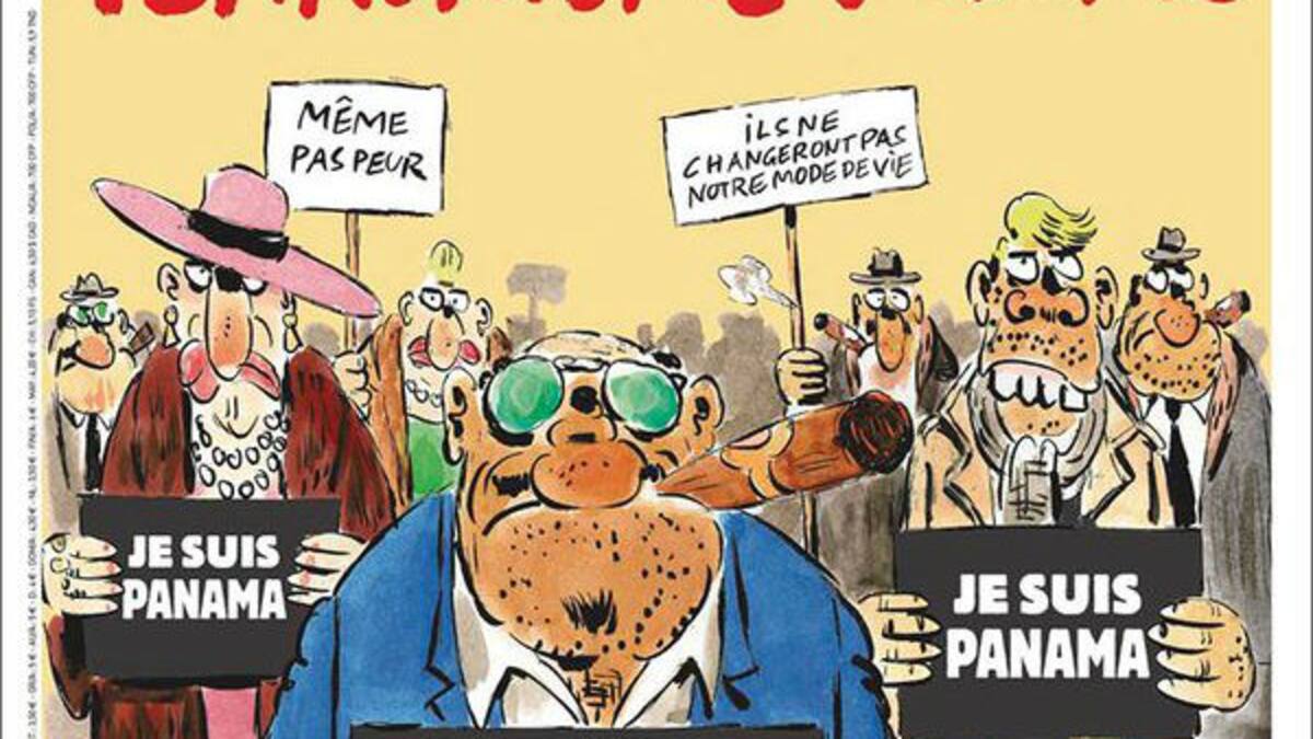 La revista 'Charlie Hebdo' dedica su portada de esta semana a las revelaciones sobre la evasión de impuestos internacional bajo el título 'Terrorismo fiscal', e ironiza con un lema para ricos, 'Je suis Panamá', que parafrasea al que sirvió de movilización tras el atentado a la propia revista parisina.