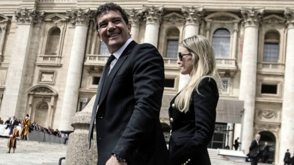 Antonio Banderas acudió al Vaticano con un traje negro, con camisa blanca y corbata, mientras que Kimpel lo hizo con una chaqueta y camisa negras, y unos pantalones a cuadros blancos y negros.