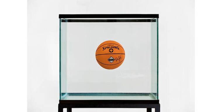 Otra obra importante en la venta es 'One Ball Total Equilibrium Tank' de Jeff Koons. La escultura de 1985 muestra una pelota de baloncesto como suspendida, dentro de una vitrina de agua destilada. Podría venderse por 12 millones de dólares.