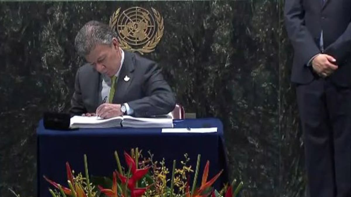 El presidente francés, François Hollande, fue el primero en estampar su firma en el documento, que a lo largo del día sellarán un total de 171 naciones. El mandatario Juan Manuel Santos también se comprometió 'por el futuro de nuestro planeta'.