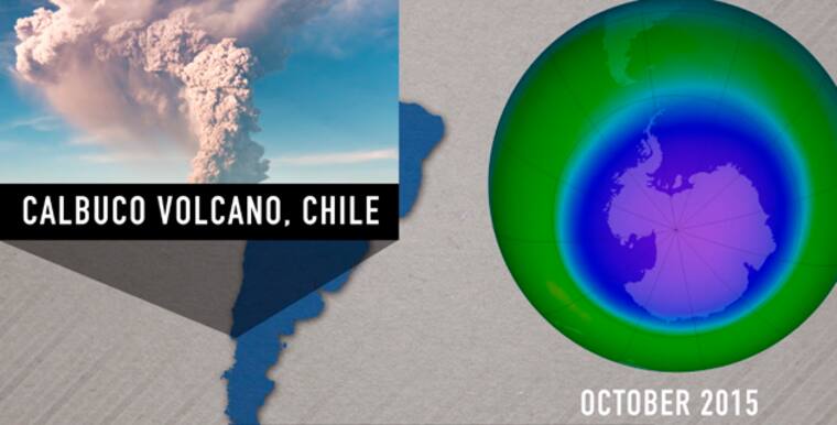 En 2015 el agujero en la capa de ozono en la Antártida alcanzó un tamaño récord en diciembre, al registrar 10 millones de kilómetros cuadrados, más del doble del promedio para estas mismas fechas, según mediciones presentadas hoy por investigadores de la Universidad de Santiago de Chile, esto se dio según los científicos, por la erupción del volcán Calbuco en Chile a principios del año pasado.