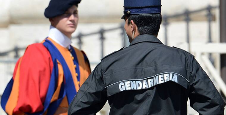 Junto al trabajo de la Guardia Suiza, dedicada en cuerpo y alma a la protección personal del Papa, el Estado vaticano cuenta con un Cuerpo de Gendarmería y Cuerpo de Bomberos, que depende de la Dirección de los Servicios de Seguridad y Protección Civil y cuyas competencias giran en torno al mantenimiento de la seguridad y el orden público, así como la de vigilar la frontera. También hay cargos de policía judicial y tributaria. Actualmente la plantilla efectiva del Cuerpo de la Gendarmería está compuesta por 130 oficiales.