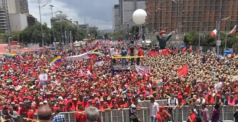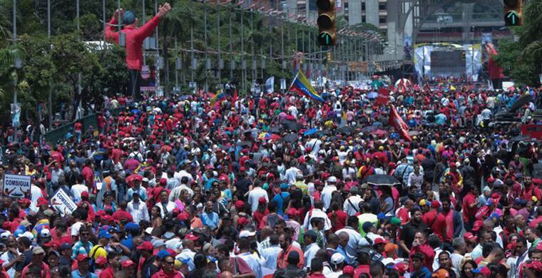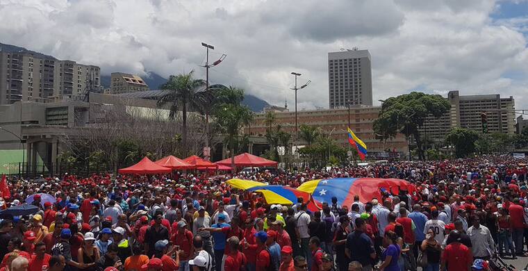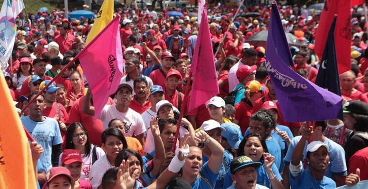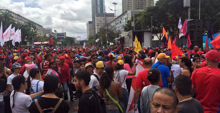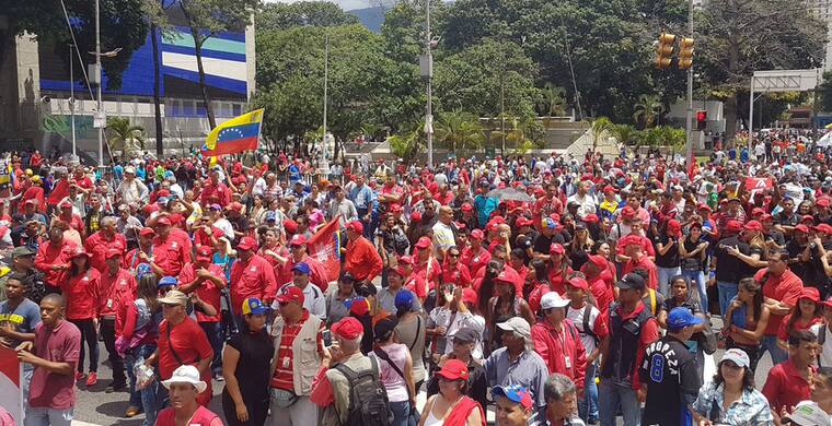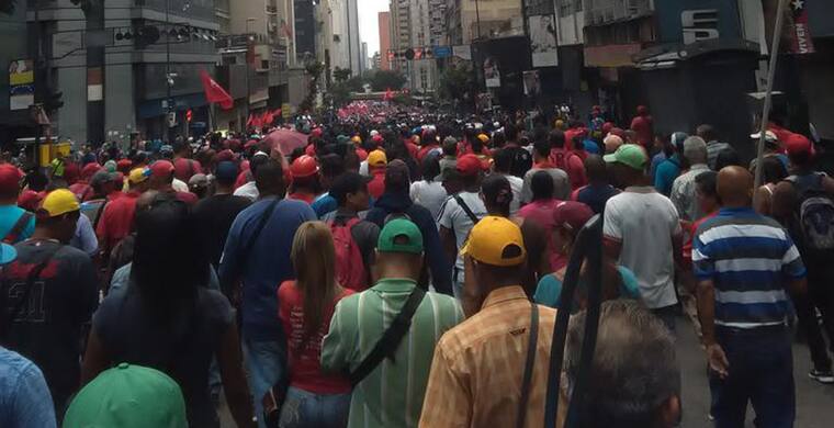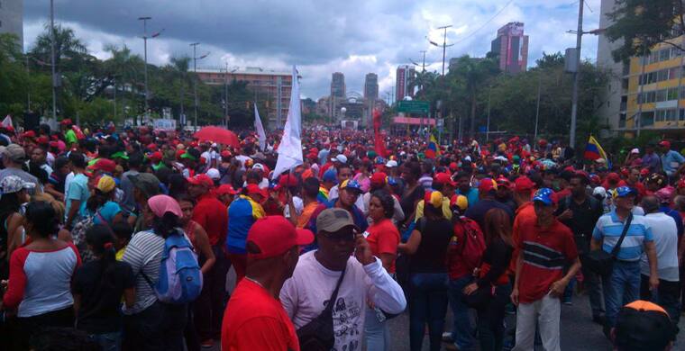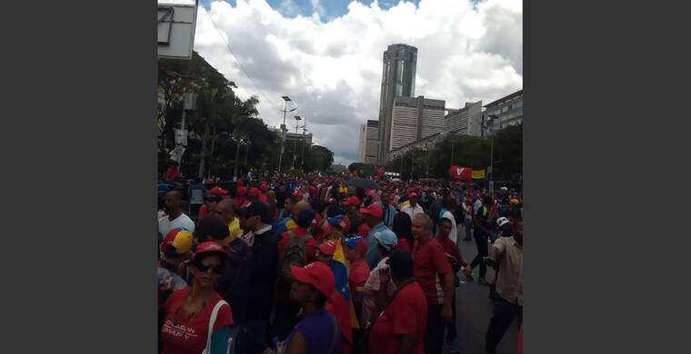 Simpatizantes del Chavismo marcharon este jueves y se concentraron en la avenida Bolívar, en Caracas, para apoyar al presidente Nicolás Maduro.