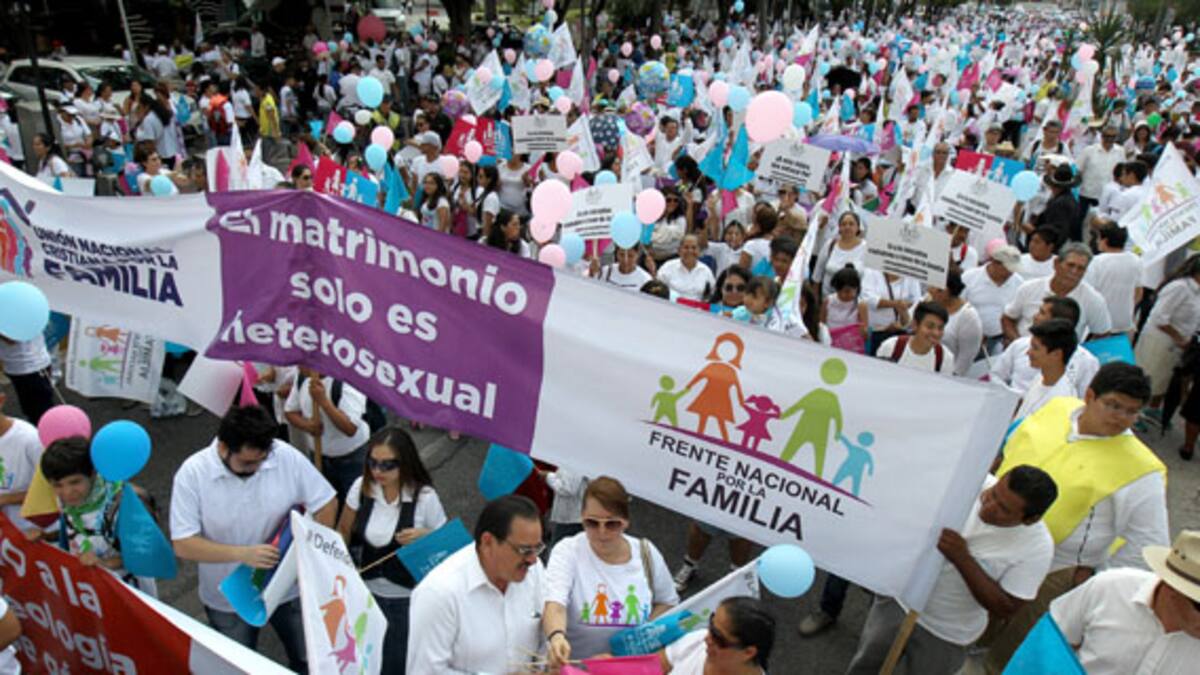 Las pancartas y consignas apoyaron el concepto de la 'familia tradicional' y cargaron contra la iniciativa presentada en mayo por el presidente a favor del matrimonio igualitario, respaldado en el país por la Suprema Corte de Justicia de la Nación (SCJN).
