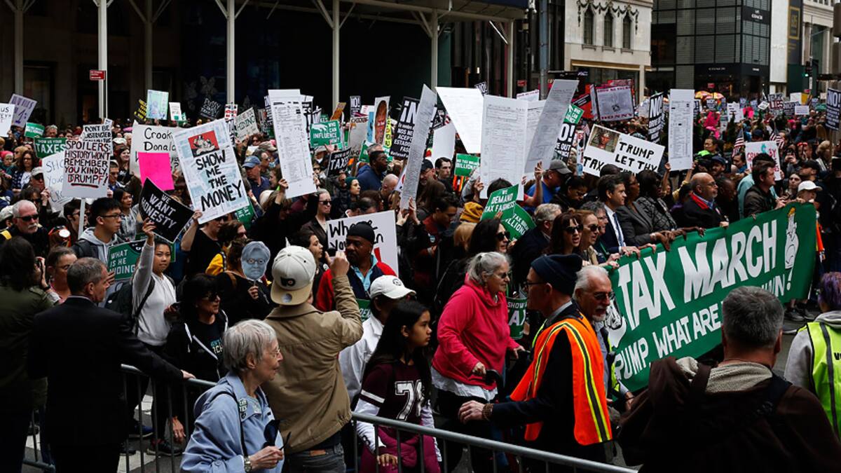 Miles de manifestantes se congregaron el sábado en varias ciudades de Estados Unidos para presionar al presidente Donald Trump a que publique su declaración de impuestos, un acto de transparencia que se ha negado a realizar.