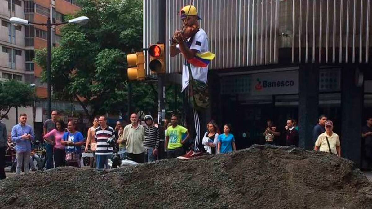 Arteaga se convirtió en un ícono de las manifestaciones que exigen la salida de Maduro del poder, asegurando que con su violín quiere dar 'un mensaje de paz' entre violentos disturbios que dejaron unos 125 muertos desde el 1 de abril.