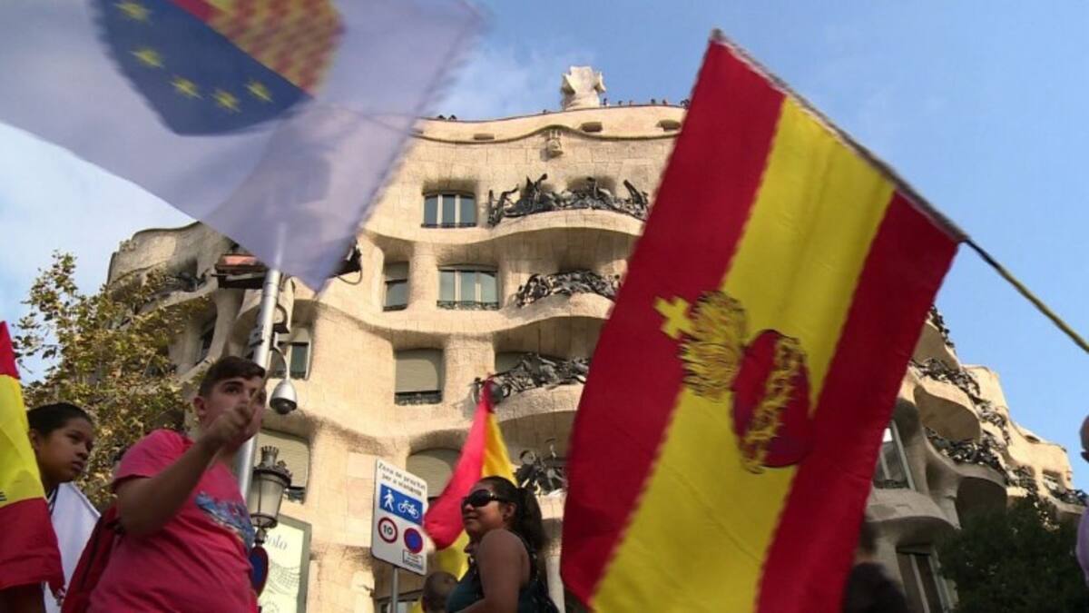 Ondeando banderas españolas y catalanas, al grito de 'Viva España' y 'Cataluña es España' los manifestantes descendieron por el emblemático Paseo de Gracia hasta la plaza Cataluña.