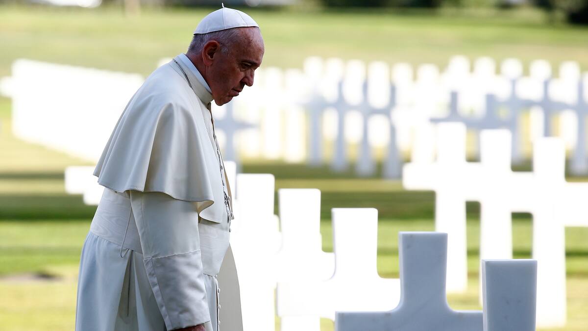 En un sermón improvisado ante miles de tumbas del cementerio estadounidense de Nettuno, el papa argentino oró por 'esos jóvenes, justo ahora que el mundo está de nuevo en guerra'.