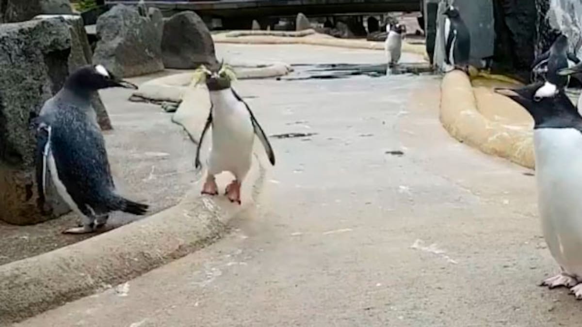 Con su melena rubia, un pingüino del zoológico de Edimburgo se ha vuelto viral tras un video que muestra su singular movimiento.