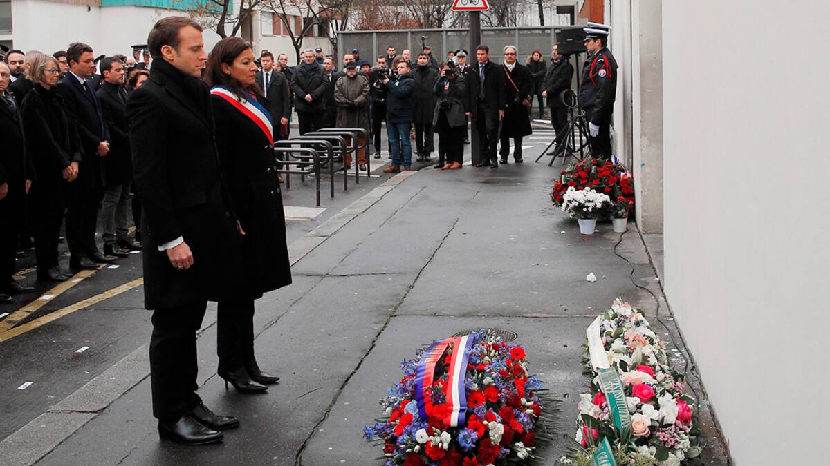 parís. El presidente francés, Emmanuel Macron, y miembros de su gobierno rindieron ayer un sencillo homenaje, por deseo expreso de las familias, a las víctimas de los atentados yihadistas en París contra el semanario satírico Charlie Hebdo y la tienda Hyper Cacher, tres años después de los hechos.