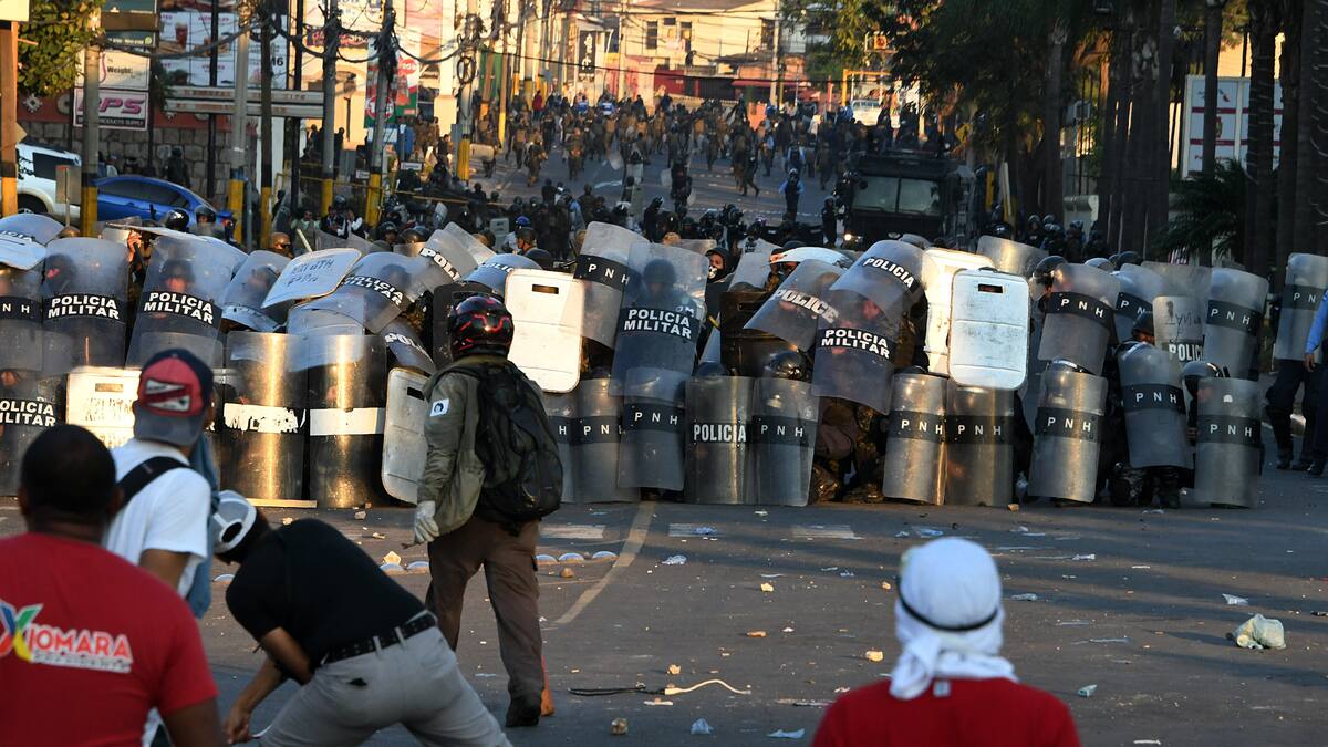 Algunos de los manifestantes contraatacaron lanzado piedras contra los cordones de policías y militares que se protegían con escudos.