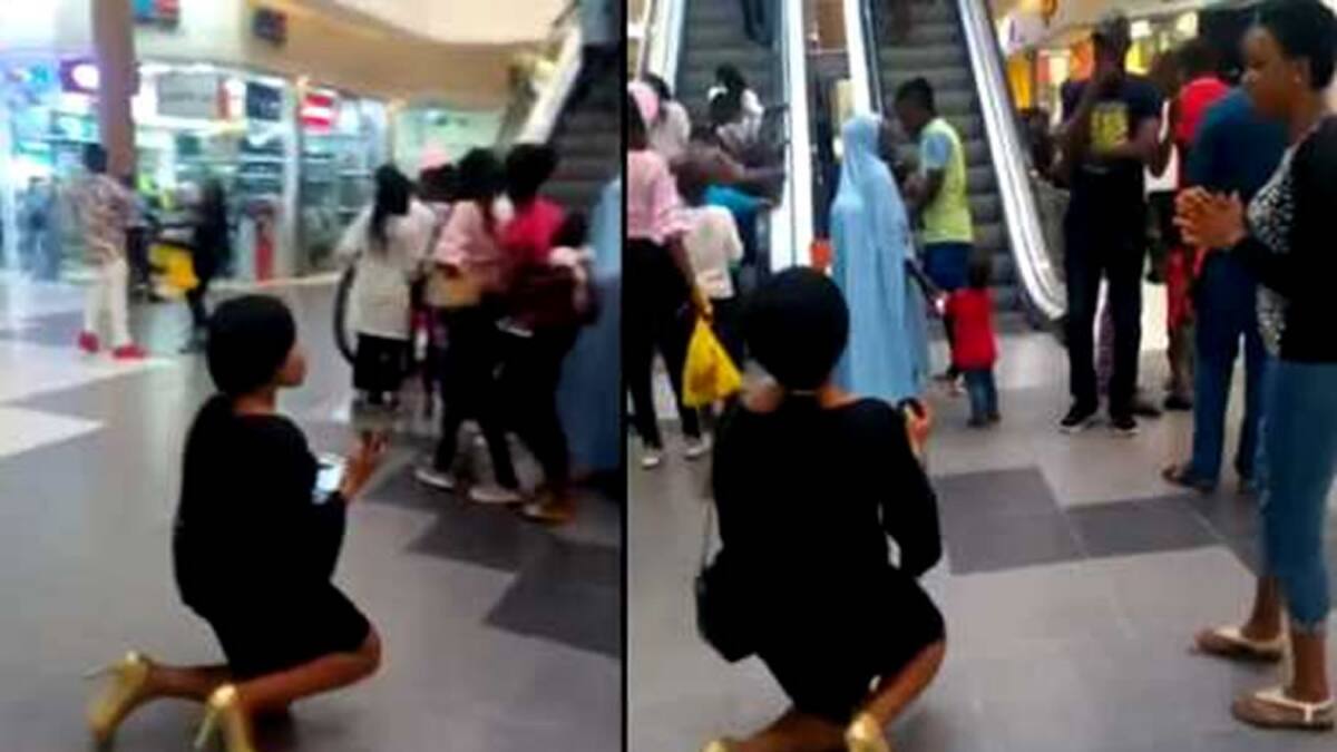Una vergonzosa escena sufrió una mujer en un centro comercial de Nigeria, cuando quiso sorprender a su compañero proponiéndole matrimonio, según se observa en un video publicado el pasado lunes en las redes sociales.