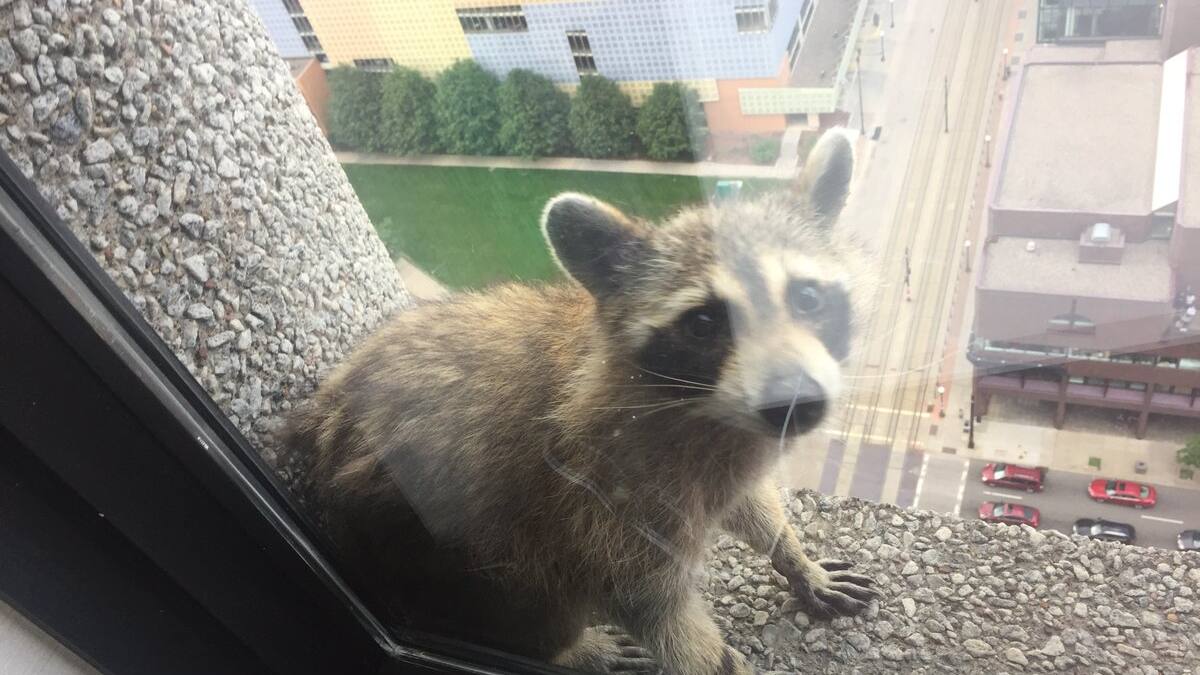 La escalada lenta y peligrosa del pequeño animal fue difundida a través de las redes sociales y fue seguida por miles de internautas que rápidamente compartieron el hashtag #MPRraccoon.