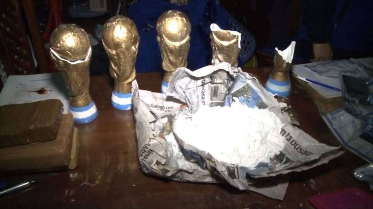 Las autoridades de Argentina decomisaron media docena de réplicas de la Copa del Mundo en las que ocultaban cocaína. Un kilo y medio de cocaína fue encontrado dentro de cada trofeo.