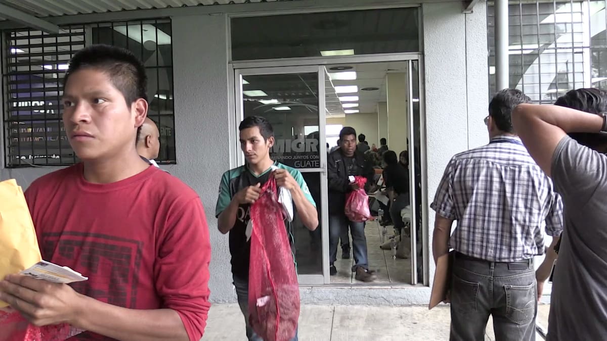El hondureño Ever Sierra regresa deportado a su país. De su mochila cuelgan los zapatos de su hija de ocho meses, quien quedó en un centro de detención en McAllen, Texas, junto a su madre.