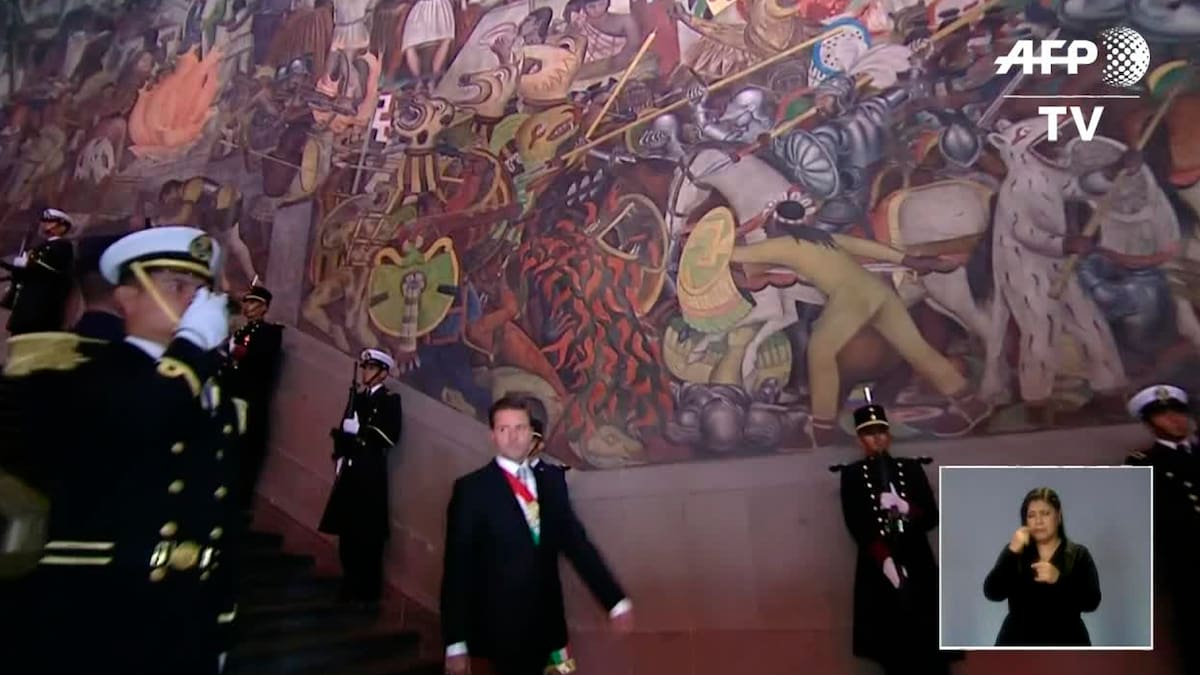 Peña Nieto, que entregará el mando el 1° de diciembre al izquierdista Andrés Manuel López Obrador, fue recibido entre aplausos y tímidos gritos de apoyo de algunos simpatizantes, que respondió con sonrisas y gestos de abrazo.