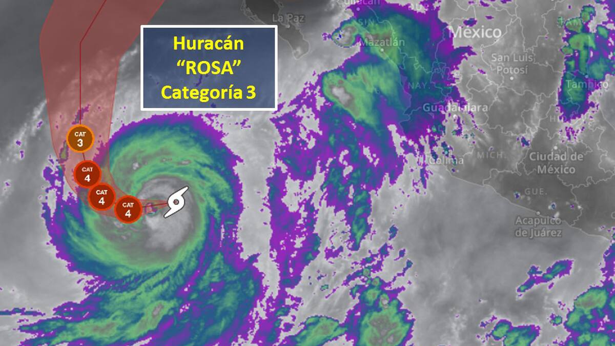 Según el pronóstico, a medida que Rosa se acerque a tierra, el noroeste de México y la costa de California, Estados Unidos, se verán afectadas por el fenómeno, que causará lluvias y alto oleaje.