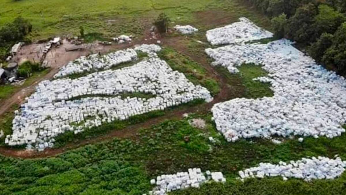 Imágenes aéreas tomadas por AFP muestran un mar de botellas de agua tiradas en el campo de la que parece ser una finca privada en el barrio Higuillar en el municipio de Dorado, 40 Km al oeste de San Juan.