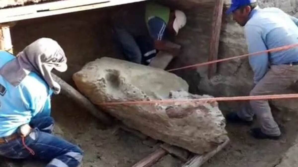 El fósil del megaterio fue descubierto por trabajadores cuando realizaban excavaciones para los cimientos de una casa en la ciudad de Yauri, provincia de Espinar.