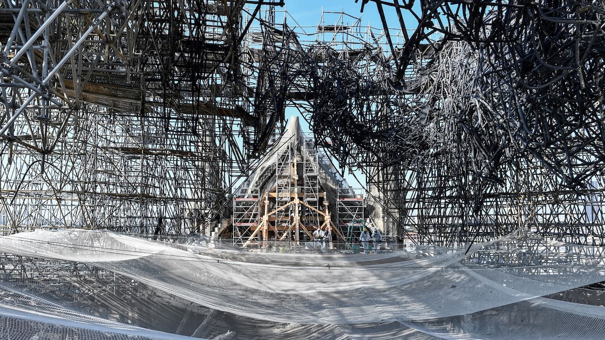 Los trabajos para desmontar el antiguo andamio, que se pegó a la estructura del techo debido al calor de las llamas, durarán varios meses. 'Se instalará otro andamio por encima para que los obreros bajen con cuerdas y corten una a una las barras', según el arzobispo.