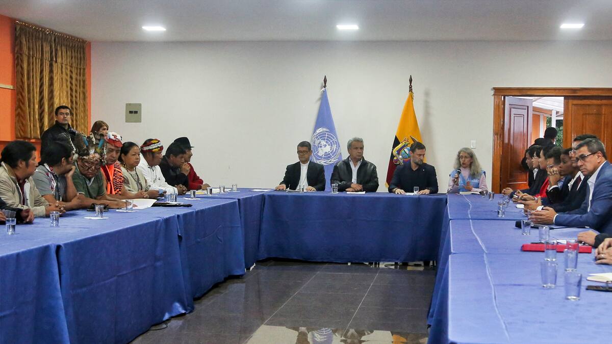 La reunión cara cara entre el mandatario y líderes de la Confederación de Nacionalidades Indígenas (Conaie) se realiza en un centro salesiano de Quito, escenario la víspera de violentas protestas que llevaron al gobierno a imponer el toque de queda.