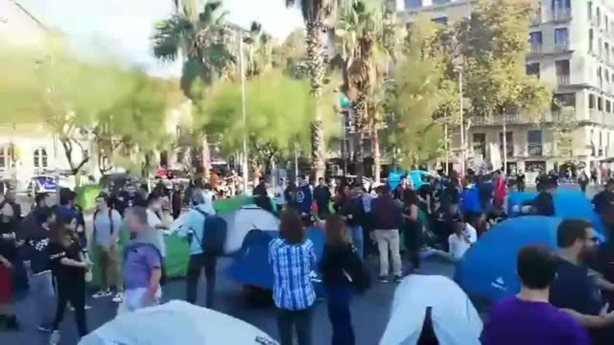 Cientos de jóvenes, la mayoría estudiantes, iniciaron este miércoles una acampada indefinida en Barcelona como protesta contra la condena a prisión de los líderes separatistas y exigiendo un referéndum de autodeterminación para esta región española.