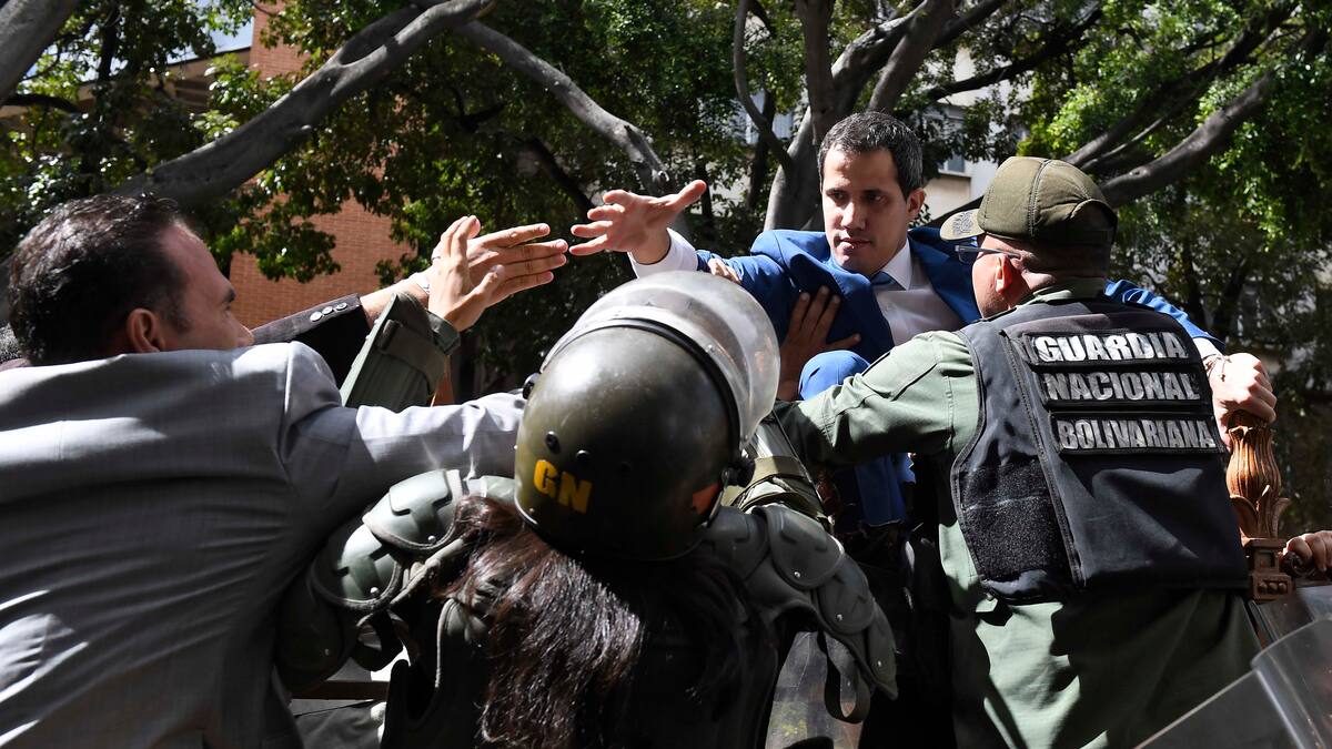 Las fuerzas de seguridad habían vetado horas antes en Caracas el acceso a la sede parlamentaria del presidente de la Asamblea Nacional, Juan Guaidó, procediéndose, según la oposición, a una sesión sin quórum ni votación.