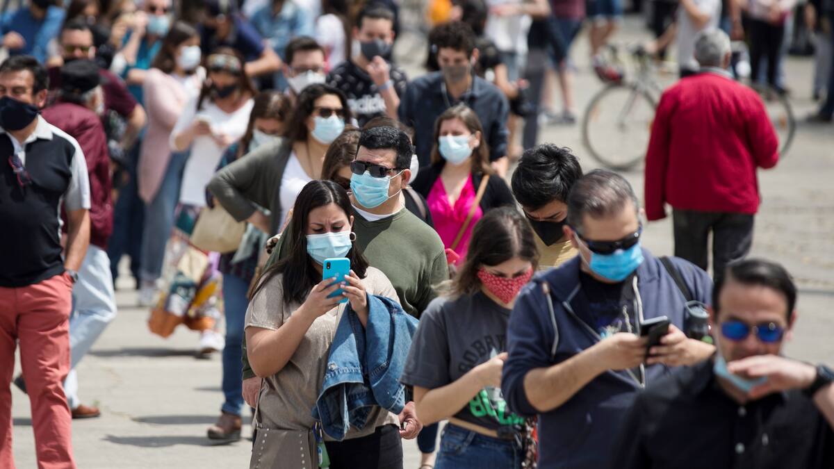 El plebiscito, convocado para descomprimir la grave ola de protestas desatadas el año pasado contra la desigualdad y en favor de mejores servicios básicos, se celebra bajo estrictas medidas sanitarias y de distancia física, que podrían explicar en parte las largas filas.