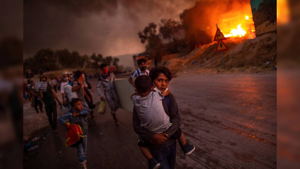 Una imagen que muestra el éxodo de niños del campo de refugiados en llamas de Moria, en la isla griega de Lesbos, es la ganadora de la actual edición del concurso internacional en el que el Fondo de las Naciones Unidas para la Infancia (UNICEF) en Alemania elige la mejor foto del año.