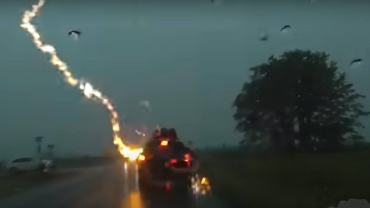 Un aterrador momento vivió una familia de cinco personas cuando viajaban en su camioneta bajo una intensa lluvia y fueron alcanzados por un rayo en Estados Unidos.