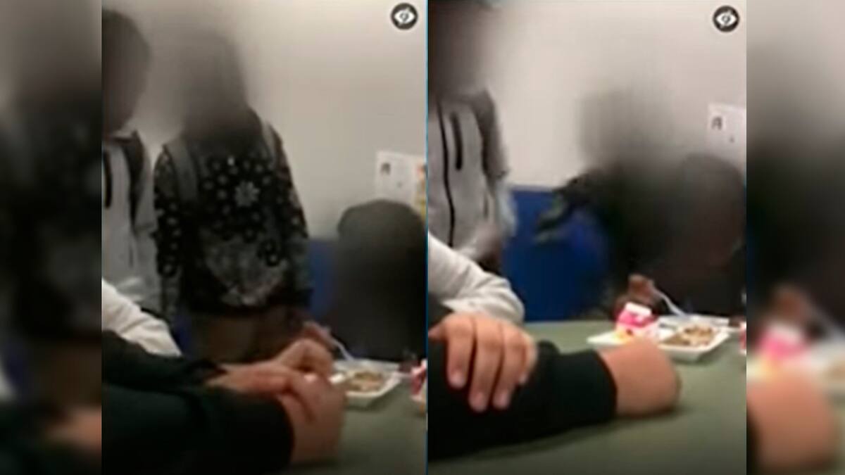 En la grabación que circula por redes sociales se puede ver como los dos agresores se acercan al menor que se encontraba comiendo y lo provocan para que pelee. Sin embargo, el joven los ignora y continúa consumiendo sus alimentos.