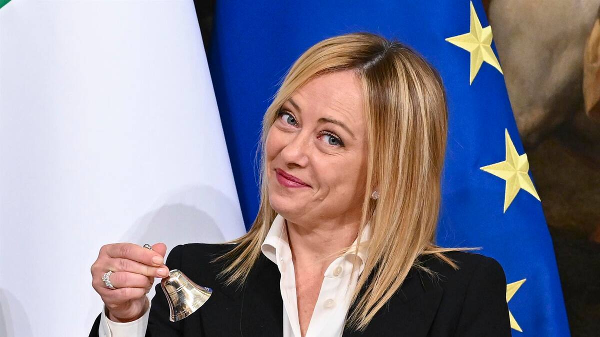 En una ceremonia simbólica Meloni recibió una pequeña campana con la que se marca el inicio de su gobierno.