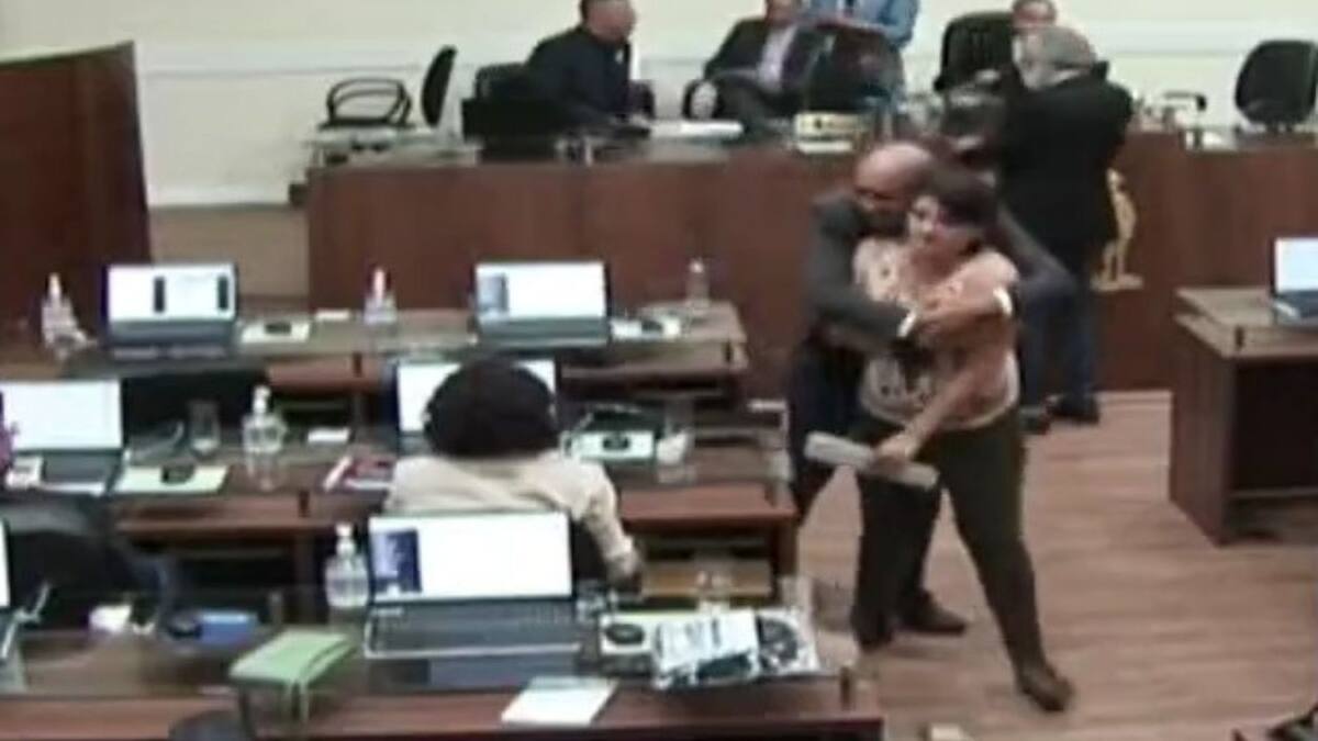 Según el video de la sesión del concejo, Ayres caminaba por el pasillo central de la Cámara en compañía de otra persona, cuando Da Silva, que estaba sentado, la agarró de la mano por sorpresa.