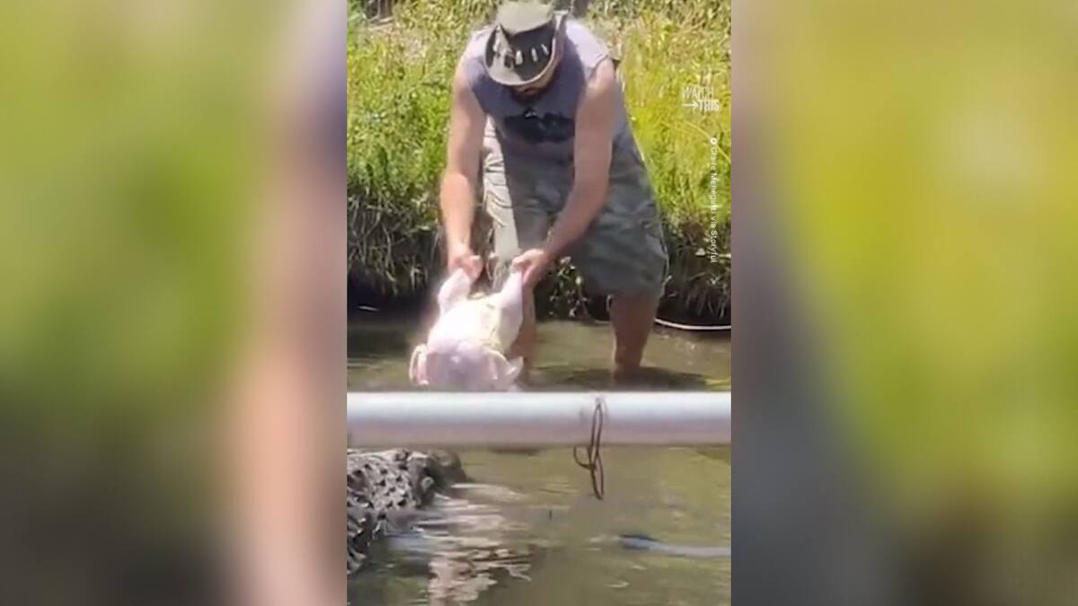 Un gran susto pasó en los últimos días uno de los trabajadores del refugio de rescate de animales en Colorado Gators Reptile Park, Estados Unidos, luego de que un caimán lo sorprendiera mientras le daba comida.