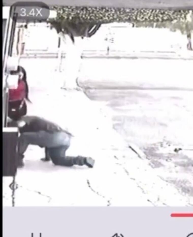 En videos de cámara de seguridad quedó grabado el momento en que un hombre se baja de un vehículo, se dirige hacia una joven que está entrando a su casa y le muerde debajo de su falda.