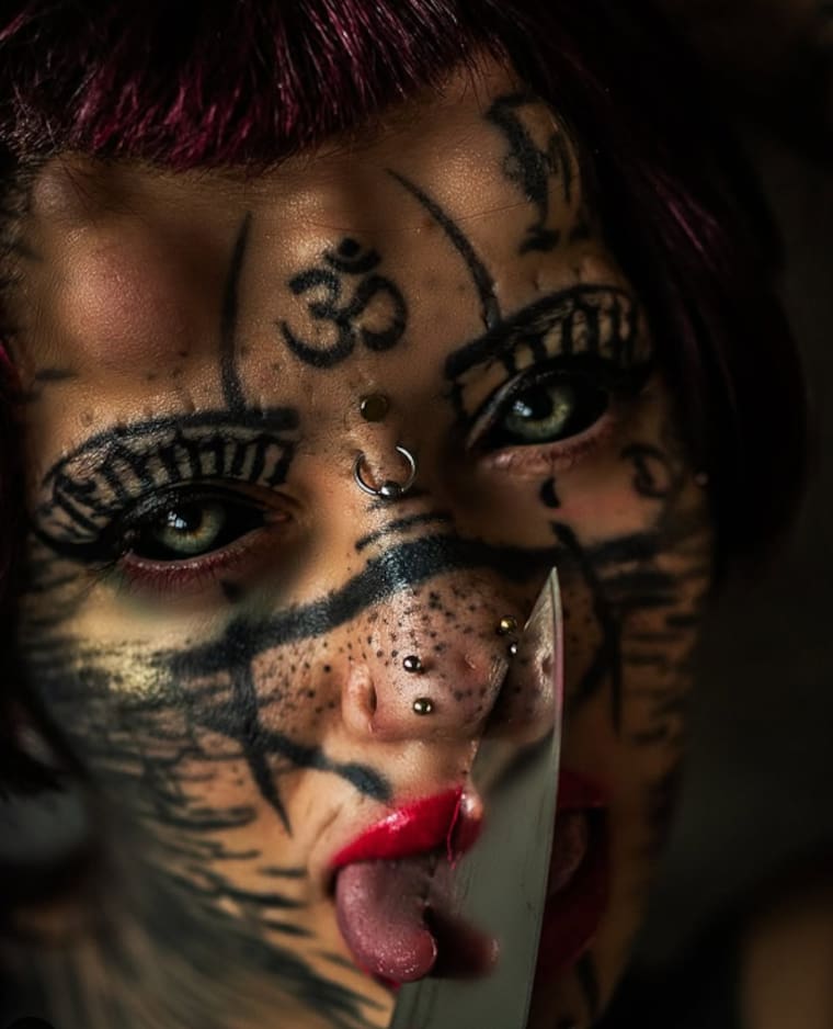 Aunque la historia parece sacada de una película, es totalmente cierta. La chica se hace llamar Aydin Mod y tiene perforaciones en las fosas nasales, lengua partida, blefaroplastia, tatuajes en los globos oculares, orejas puntiagudas, implantes en la frente y uñas con forma de garra.